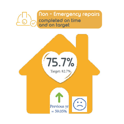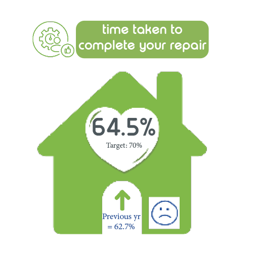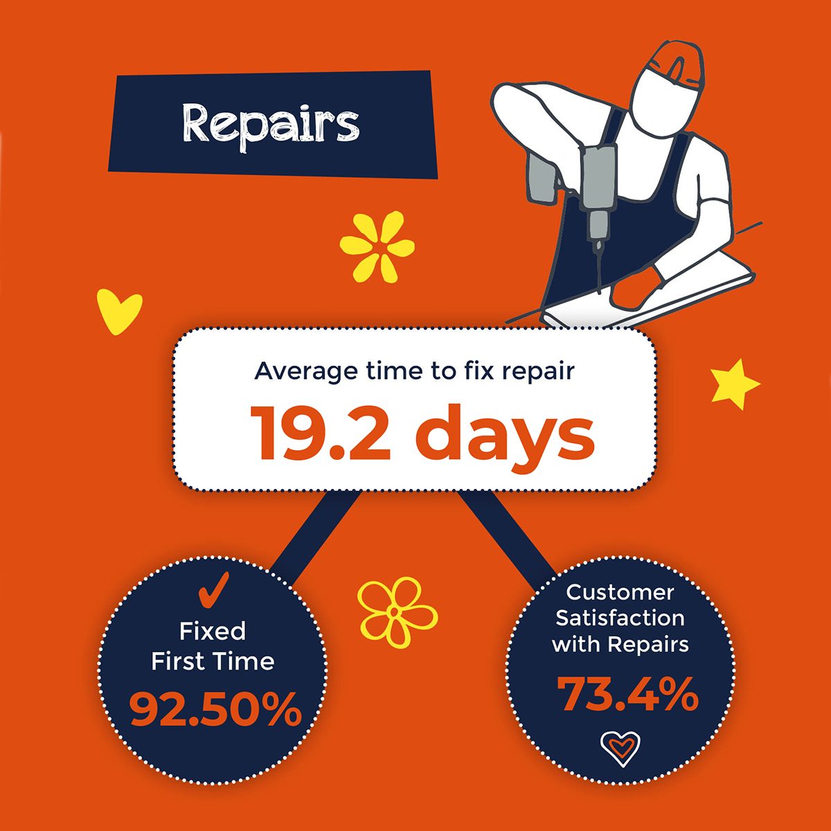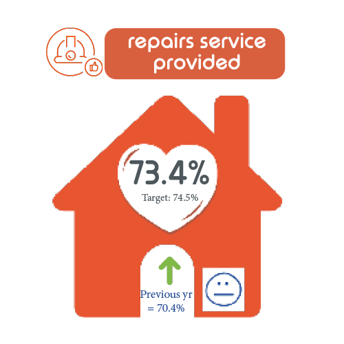 Over the last year we have completely reviewed the way we deliver our repairs service. With the help of our customers, we have implemented a new IT system, and reorganised the way we deliver the service. As a result, repairs surveys show that overall satisfaction with the service stands at 73.4% compared to last year which was 70.4%. We still need to do better in this area though, and improving the repairs service remains a focus for us in the coming months.