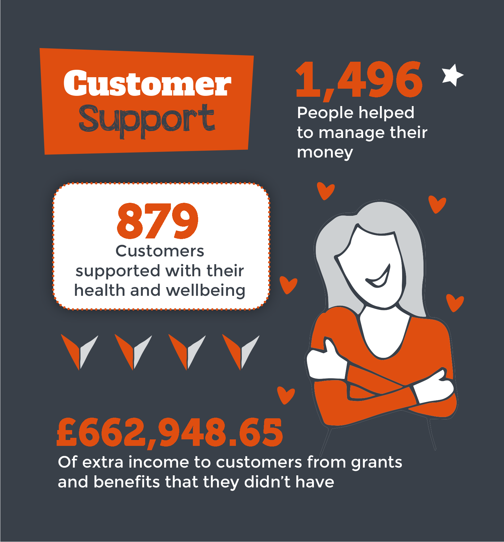 We have implemented a new ‘Escalate and Resolve’ procedure which means our customer facing colleagues can work quickly to identify complex cases where a customer may be struggling to live within the requirements of their tenancy. This is proving to be particularly helpful for people with additional needs or living in poverty.