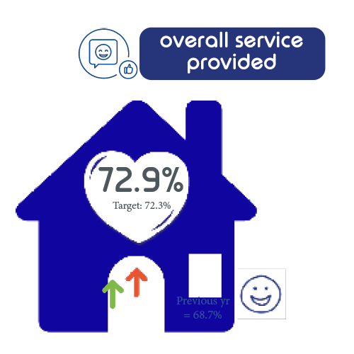 We provide customers with an update every 3 months of how we are performing against the Government’s Tenant Satisfaction Measures. We do this in the Voice (the customer magazine) and on the website. Below is the full year’s figures up to March 2025. You can also see the most recent figures here on our website. You will see we are performing better in some areas than we were 12 months ago, but there are some areas which still require more work and we are not reaching our target, for example time taken to complete repairs and completing non emergency repairs within the timescales. These ares are a focus for us over the coming year.